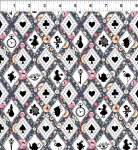 Step into a world of whimsy with the Alice Multi Characters Fabric, designed to ignite your creativity. Perfect for quilting and craft enthusiasts, this high-quality cotton fabric boasts vibrant, durable designs that capture the enchanting essence of Wonderland. The pattern features iconic silhouettes of beloved characters like Alice, the Mad Hatter, and the Cheshire Cat, intertwined with playful motifs such as teacups, keys, and playing card suits. Measuring approximately 44 inches wide, this fabric is ideal for crafting unique quilts, pillows, or any project that demands a touch of magic. Let your imagination run wild and transform your creations into a storybook masterpiece with this captivating fabric.